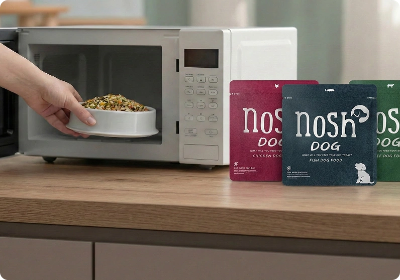 nosh DOGの商品は、レトルトでお届けしています。届いたら常温で保存し、直射日光や高温多湿を避けて保管してください。。