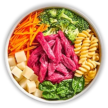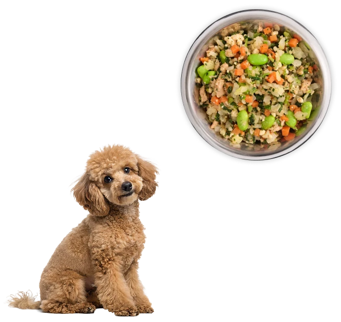 必要な食事量は、体重・年齢・活動量・レシピのカロリーによって異なります。 「給与量の目安」を参考に、1日2〜3回に分けて与えることをおすすめします。 愛犬の体調、便の状態を見ながら適量を調整してください。