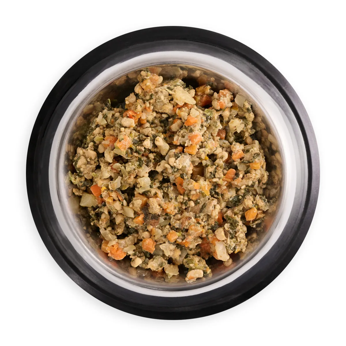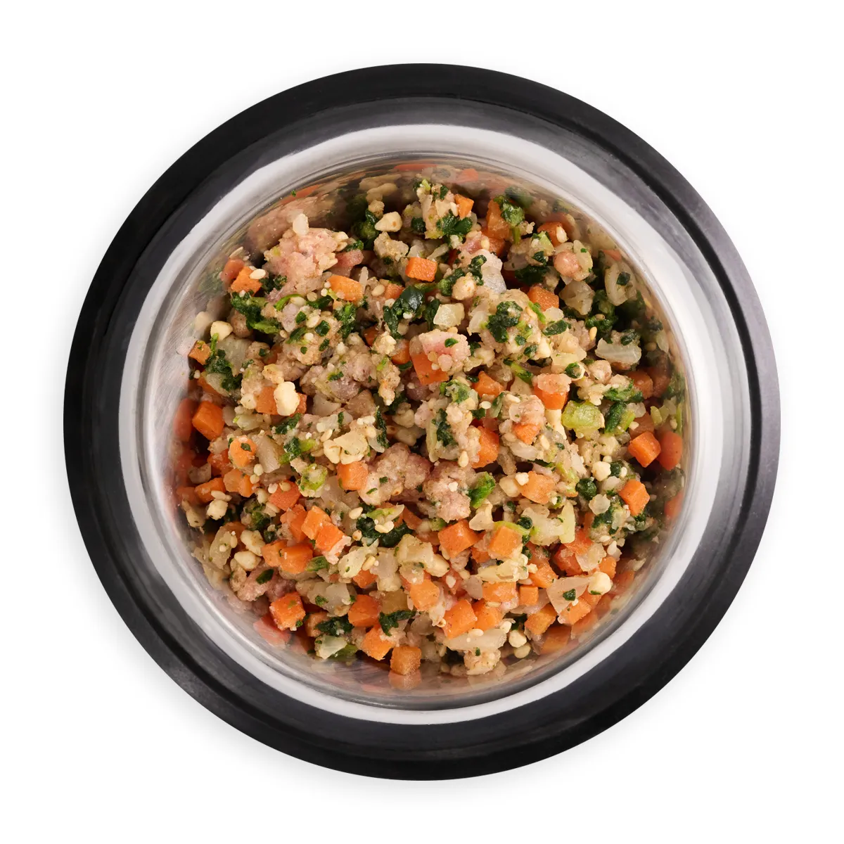 豚肉は良質なたんぱく質とビタミンB1を豊富に含み、エネルギー代謝や筋肉の維持に役立ちます。日常的に運動量の多い成犬や活発なシニア犬にも適したバランスごはんです。