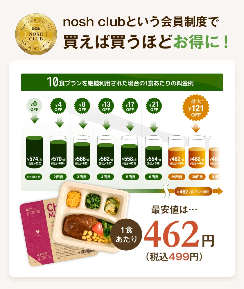 noshもどうやら値上げらしい。10食セットで1食599円が620円になるらしい。