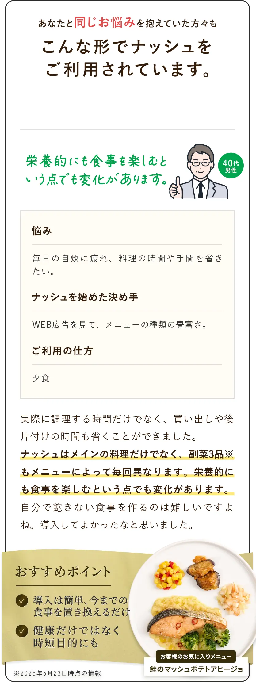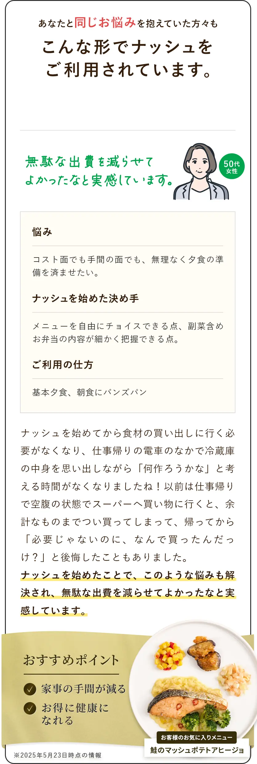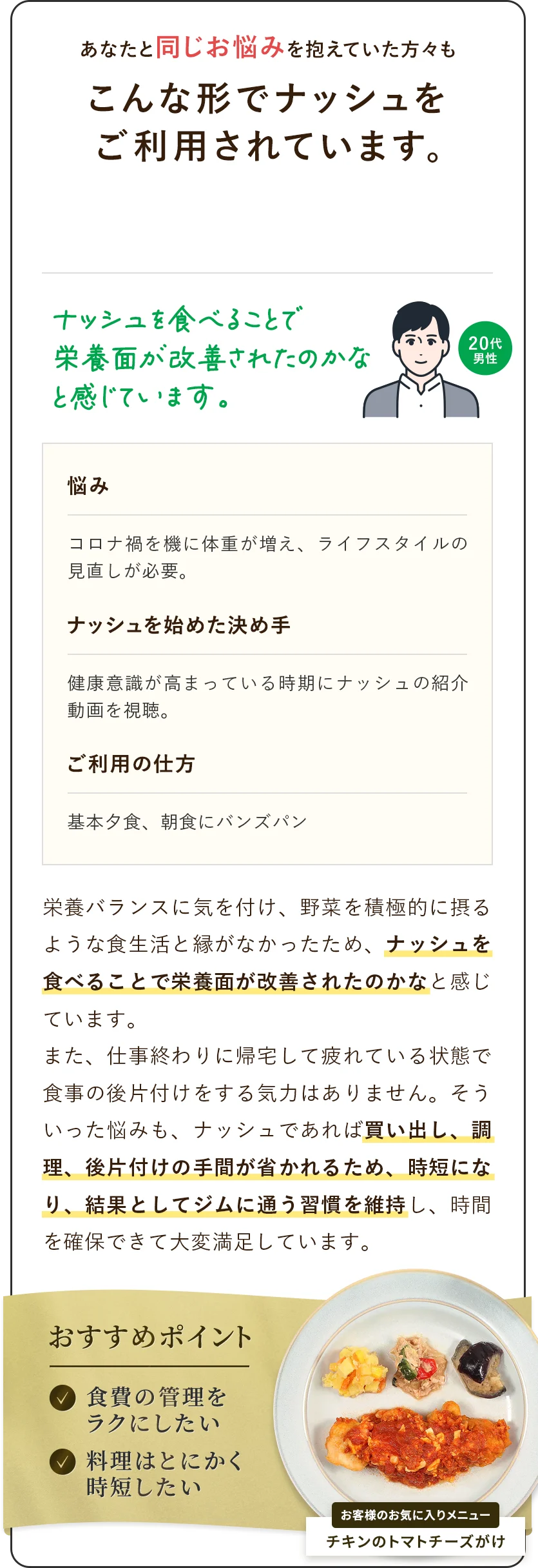 「そのうち」ではなく「今から」始める。食べるだけで無理なく健康管理。たった30秒の日々の食生活に関するアンケートです。アンケートに答えて、このページからの購入をすると1食あたり220円でお試しいただけます。