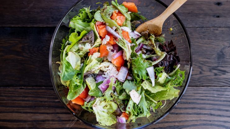 丼ものや麺類を食べる場合は、先にサラダや野菜の小鉢を食べる工夫をしてみてください。