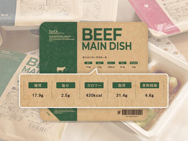 ナッシュでは1食ごとにカロリー・糖質・脂質・塩分・食物繊維がパッケージや注文画面にわかりやすく表示されています。