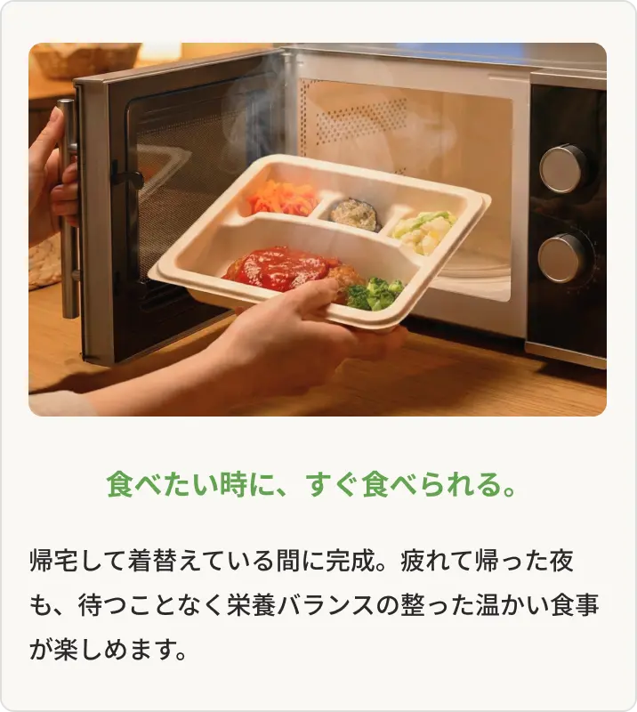 買い出しや調理の手間を省き、帰宅後すぐに美味しい食事を楽しめるのが魅力です。糖質や塩分が計算されているので、仕事で忙しい時期の不規則な食生活も改善されました。浮いた時間は洗濯や掃除、休息に充てられるようになり、暮らしの質がぐんと上がった実感があります。